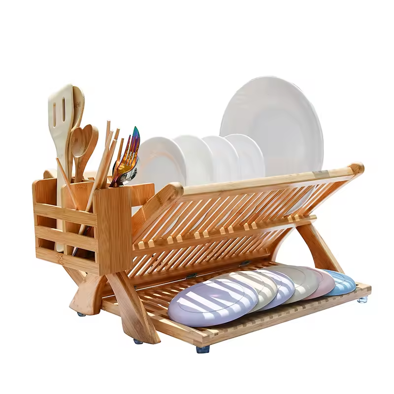 ประเภท:ชั้นวางจานไม้ไผ่พร้อมที่วางภาชนะสำหรับจานในครัวถ้วย