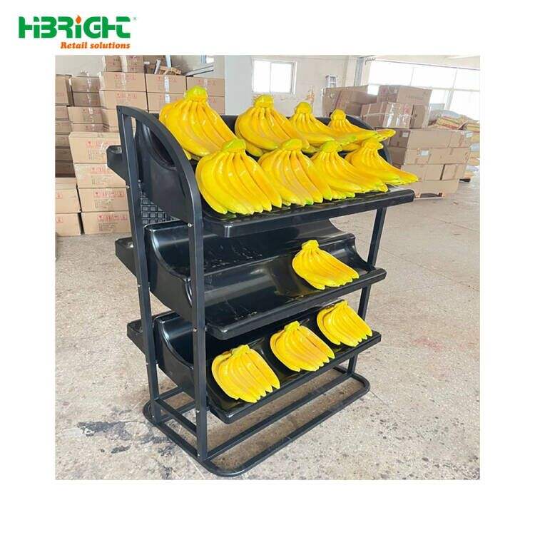 ชั้นวางกล้วยโลหะ 3 ชั้น สำหรับซุปเปอร์มาร์เก็ต พร้อมถาด ABS