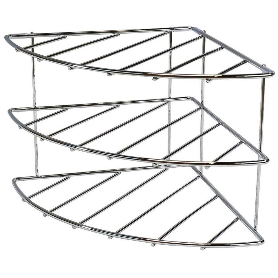 ชั้นวางของโลหะ 3 ชั้นสำหรับมุมห้องครัว ชั้นวางเก็บของเคลือบโครเมียม สำหรับวางหม้อ กระทะ ฝาหม้อ ช่วยประหยัดพื้นที่