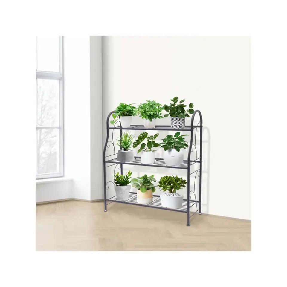 ชั้นวางกระถางต้นไม้ทำจากโลหะ3ชั้นชั้นสำหรับวางกระถางต้นไม้กลางแจ้งใช้ในร่ม