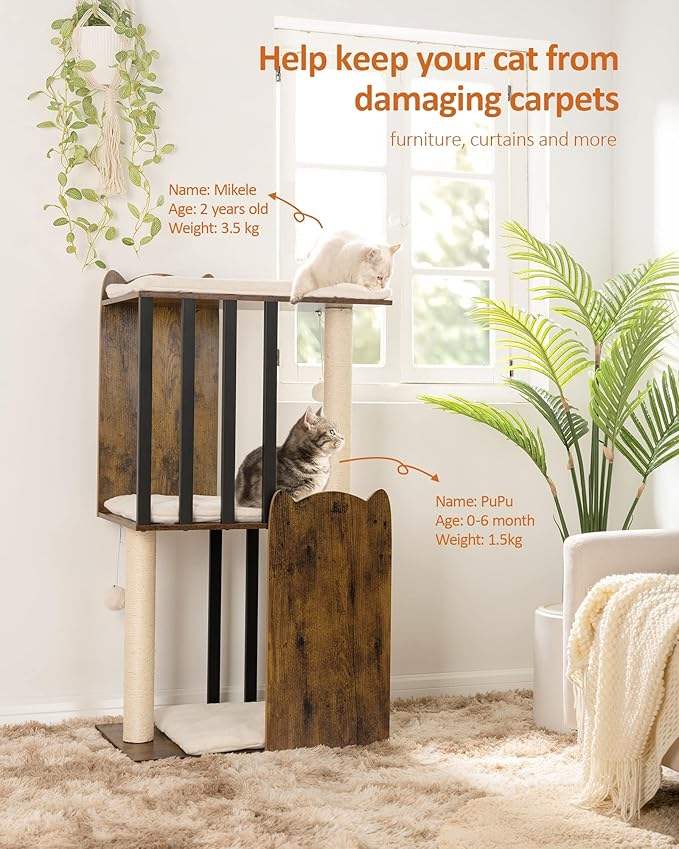คอนโดแมวทรงตึก 3 ชั้น ทำจากไม้เนื้อแข็งทันสมัย พร้อมเสาข่วนทำจากไซซอลขนาด 19.7 นิ้ว 2 เสา เฟอร์นิเจอร์สำหรับแมวในบ้านที่ทนทาน