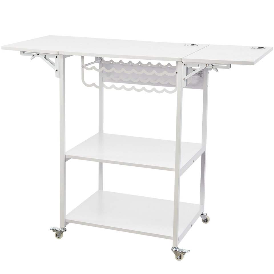 แท่นวางเครื่องรีดร้อนแบบพับได้ 3 ชั้น พร้อมที่วางม้วนและล้อสำหรับเก็บม้วนไวนิล