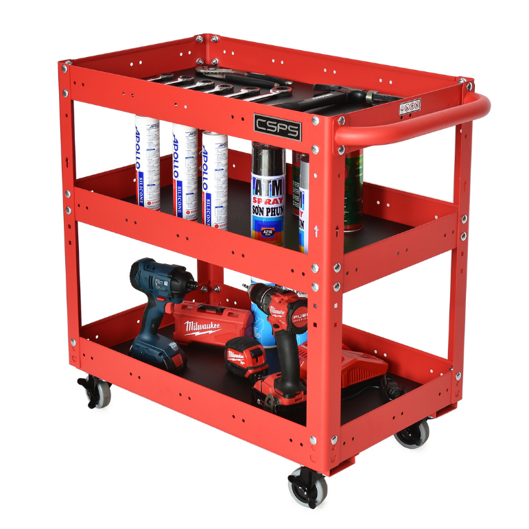 รถเข็นเครื่องมือแบบม้วน3ชั้นสำหรับอุตสาหกรรมช่างกล่องเครื่องมือตู้เก็บของในคลังสินค้าที่ได้รับการสนับสนุนจากเวียดนาม