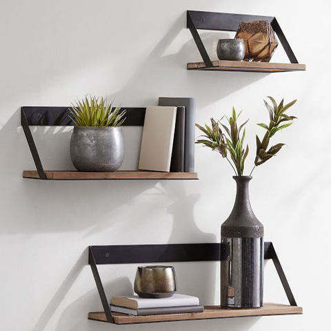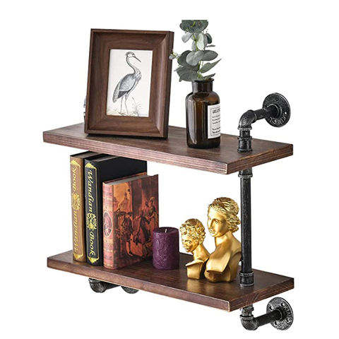 ชั้นวางของติดผนัง 3 ชั้น ทำจากโลหะและไม้ สำหรับตกแต่งบ้าน ห้องนั่งเล่น โรงแรม ห้องนอน ใช้เก็บของ