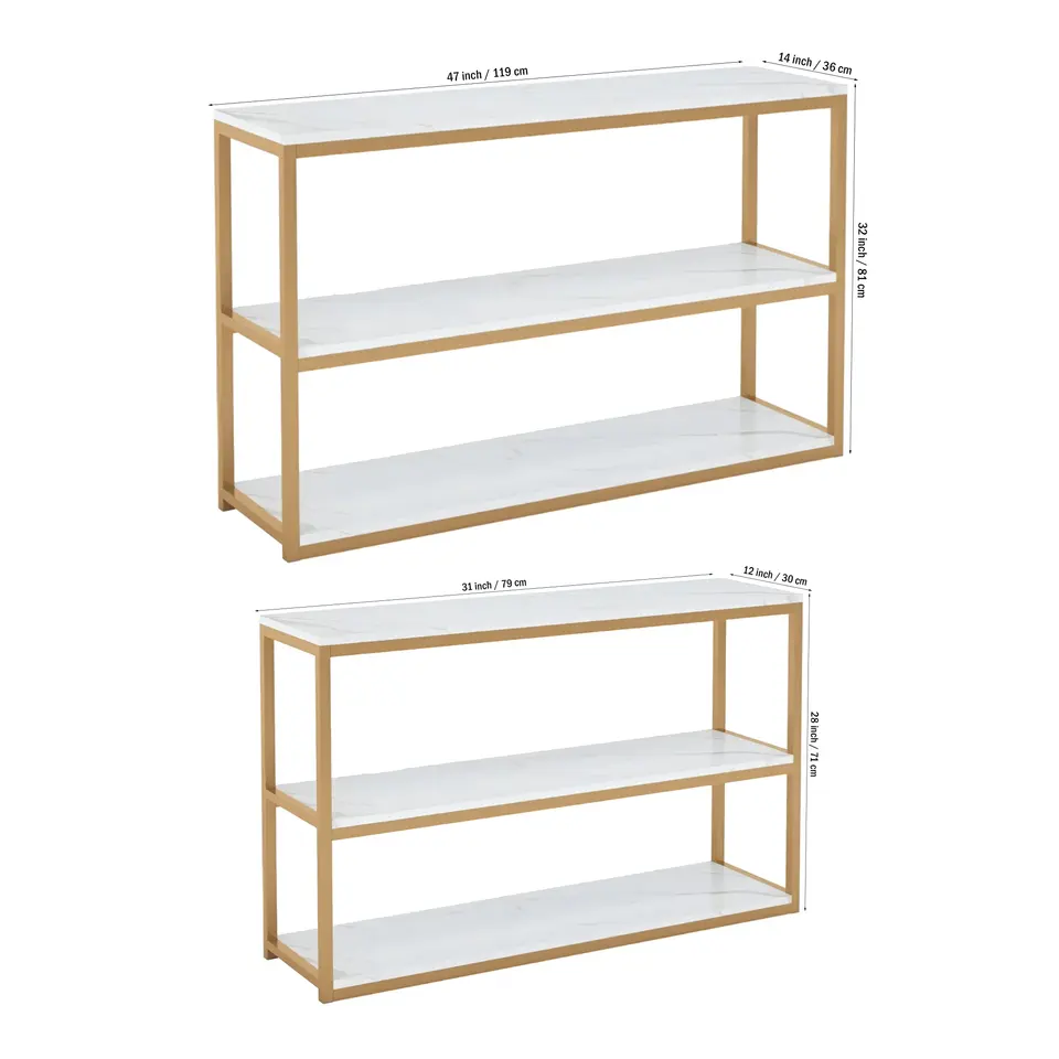 โต๊ะคอนโซลหินอ่อนสีขาว3ชั้นตกแต่งบ้านเฟอร์นิเจอร์สีทอง