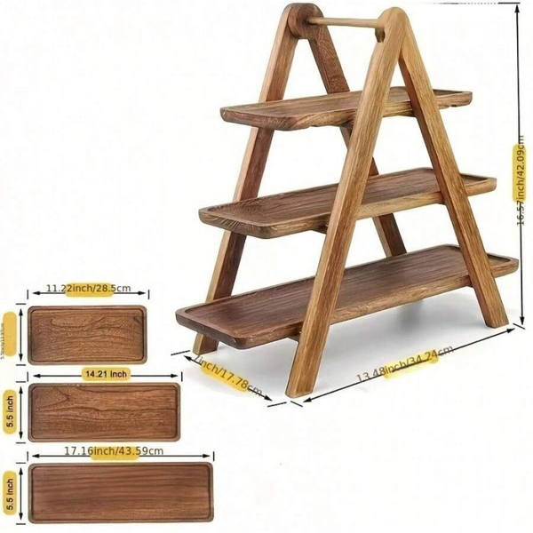 ถาดเสิร์ฟและชั้นวางของไม้ 3 ชั้น