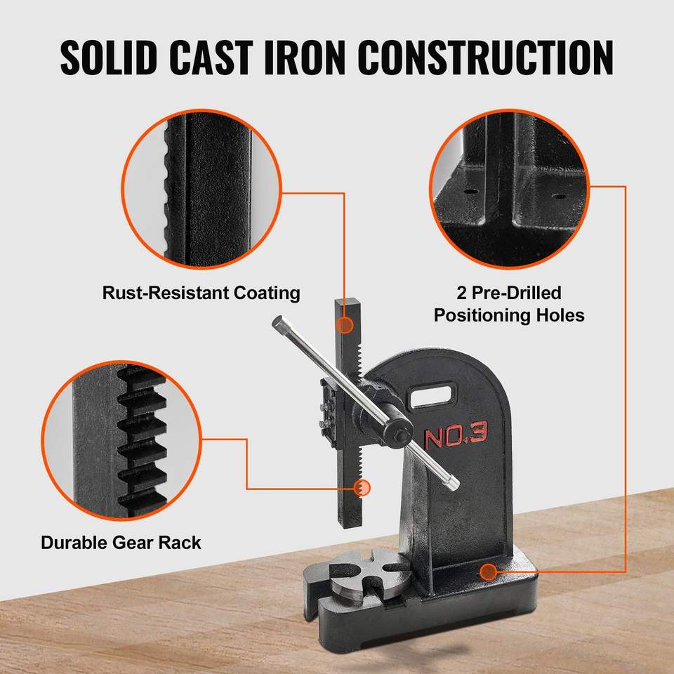 เครื่องอัดแบบตั้งโต๊ะ 3 ตัน แบบแมนนวล โครงเหล็กหล่อสำหรับงานหนัก ความสูงสูงสุด 12.2 นิ้ว เครื่องมือช่างแบบแม่นยำสำหรับเจาะหนัง งานหนัก