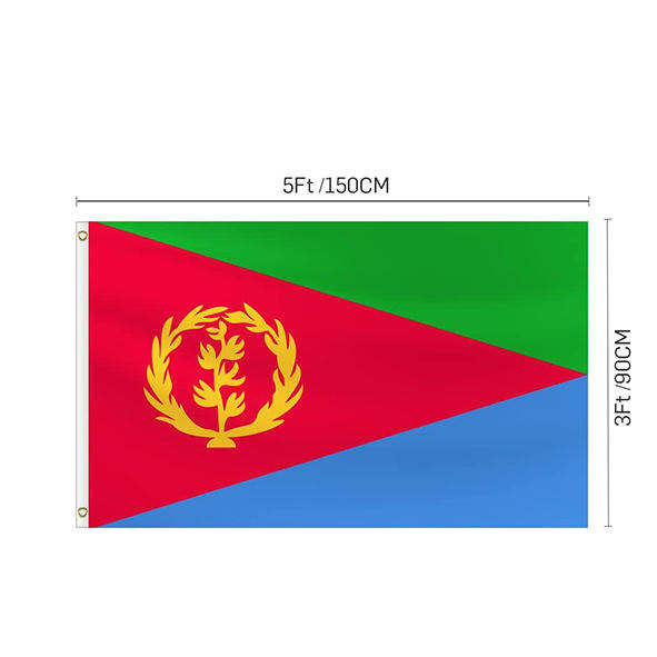 ธงโพลีเอสเตอร์ขนาด 3x5 ฟุต ธงชาติเอริเทรียแบบกำหนดเอง พร้อมห่วงทองเหลือง สำหรับแขวนโบยบินได้ พกพาสะดวก ใช้สำหรับงานส่งเสริมการขาย