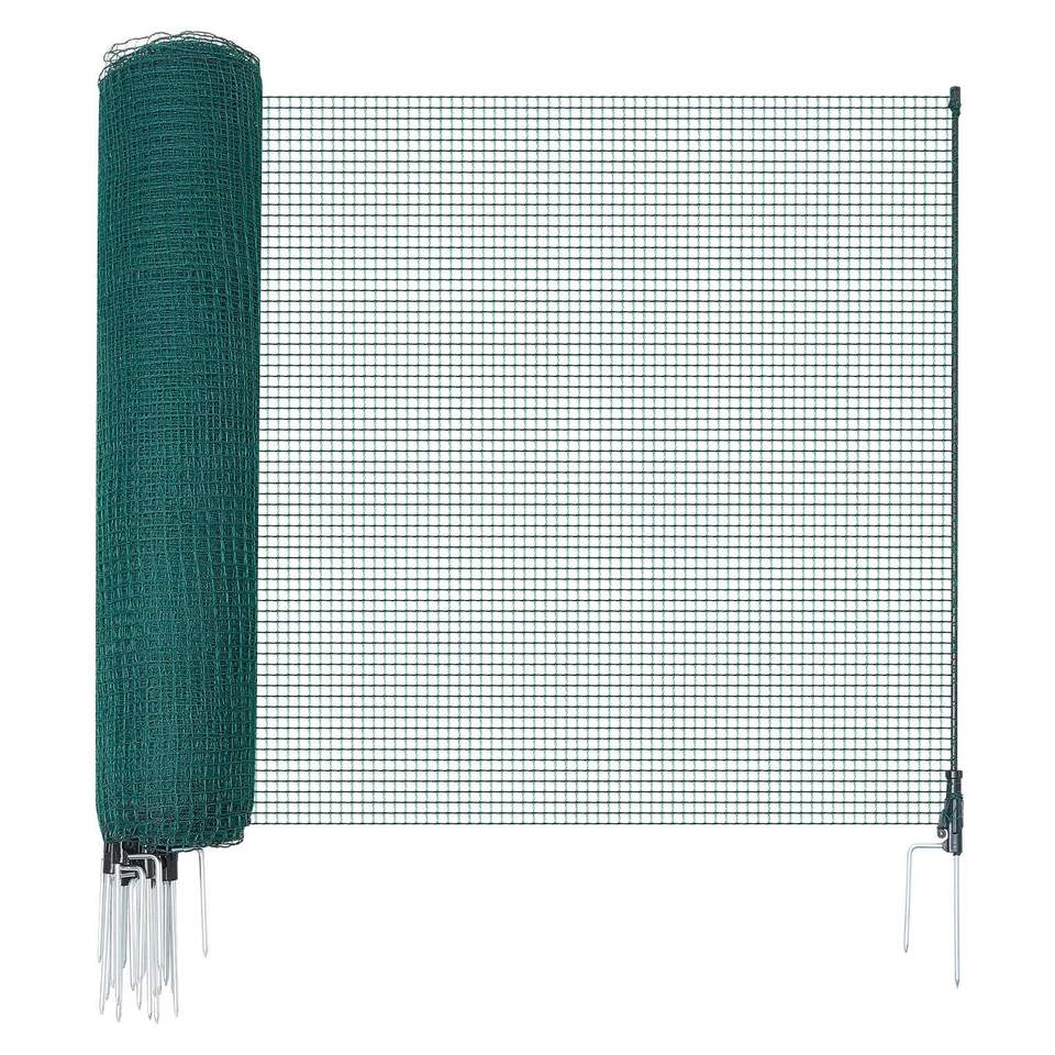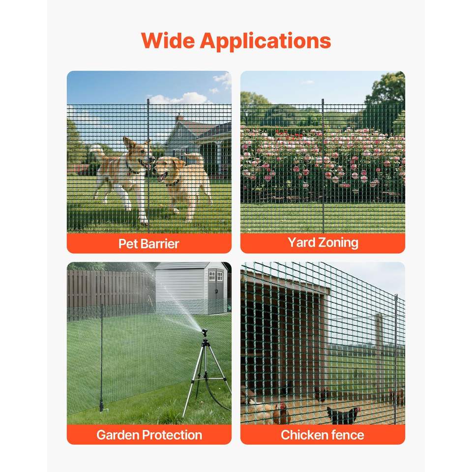 ตาข่ายนิรภัยสำหรับสวนขนาด 3 x 98.4 ฟุต รั้วชั่วคราวพร้อมเสาและเสาปักสองง่าม ตาข่ายพลาสติก พร้อมเชือกยึด