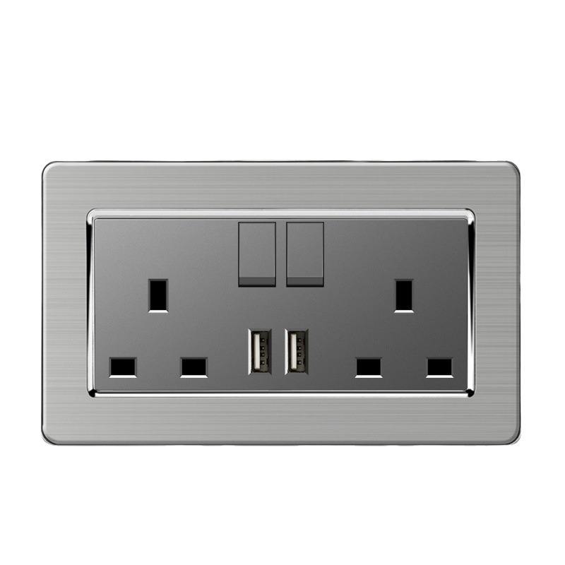 เต้ารับติดผนังทำจากแก้ว PVC 3รูพร้อมพอร์ตชาร์จแบบ USB และ Type-C สำหรับ86x86mm แผง PC ของปลั๊กแบบ UK และแอนดรอยด์
