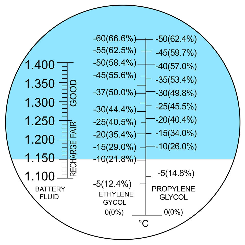 ช่วงการวัด (ของเหลวแบตเตอรี่ SG):1.100 - 1.400กก./ลิตร