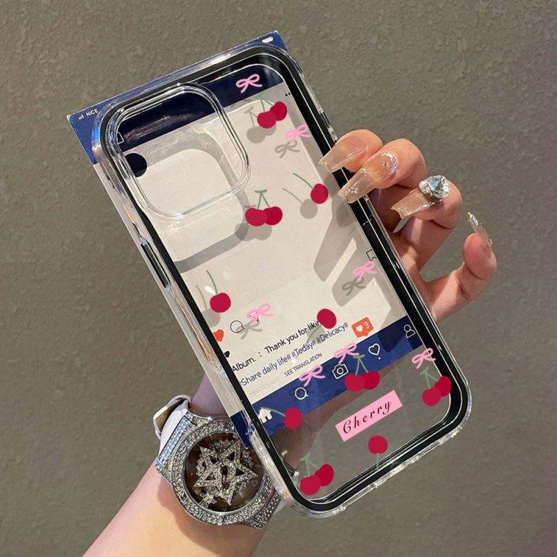 เคสโทรศัพท์ลายโบว์เชอร์รี่สีลูกกวาด 3 in 1 สำหรับ iPhone 17 Air 16 13 11 15 14 12 11 Pro Max วัสดุ TPU+อะคริลิคใส