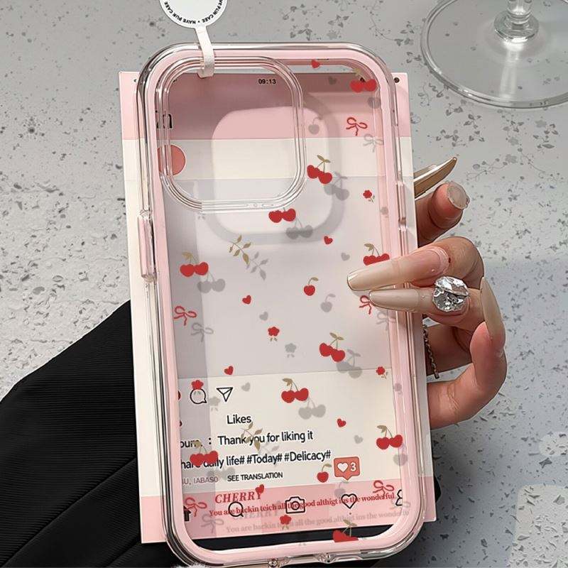 เคสโทรศัพท์ลายโบว์เชอร์รี่สีลูกกวาด 3 in 1 สำหรับ iPhone 17 Air 16 13 11 15 14 12 11 Pro Max วัสดุ TPU+อะคริลิคใส