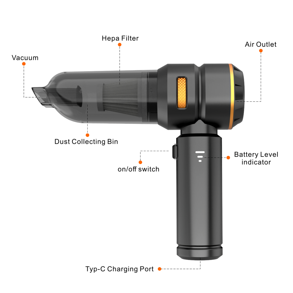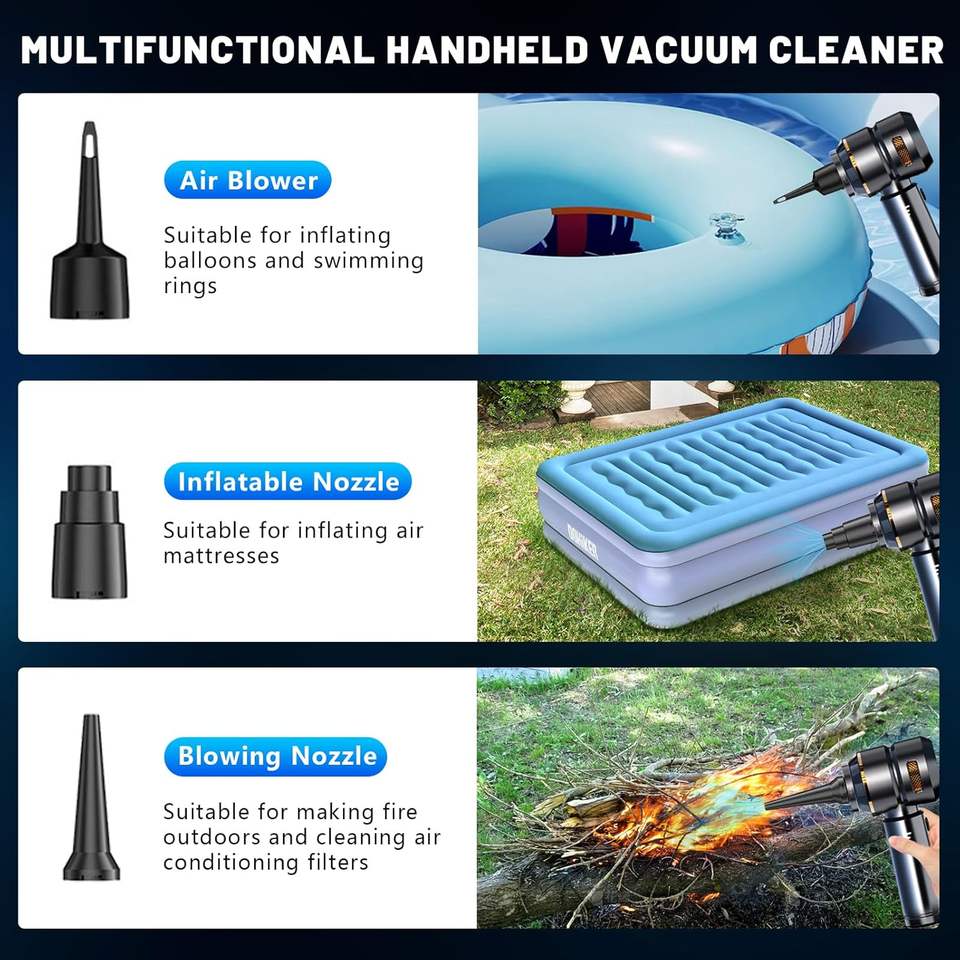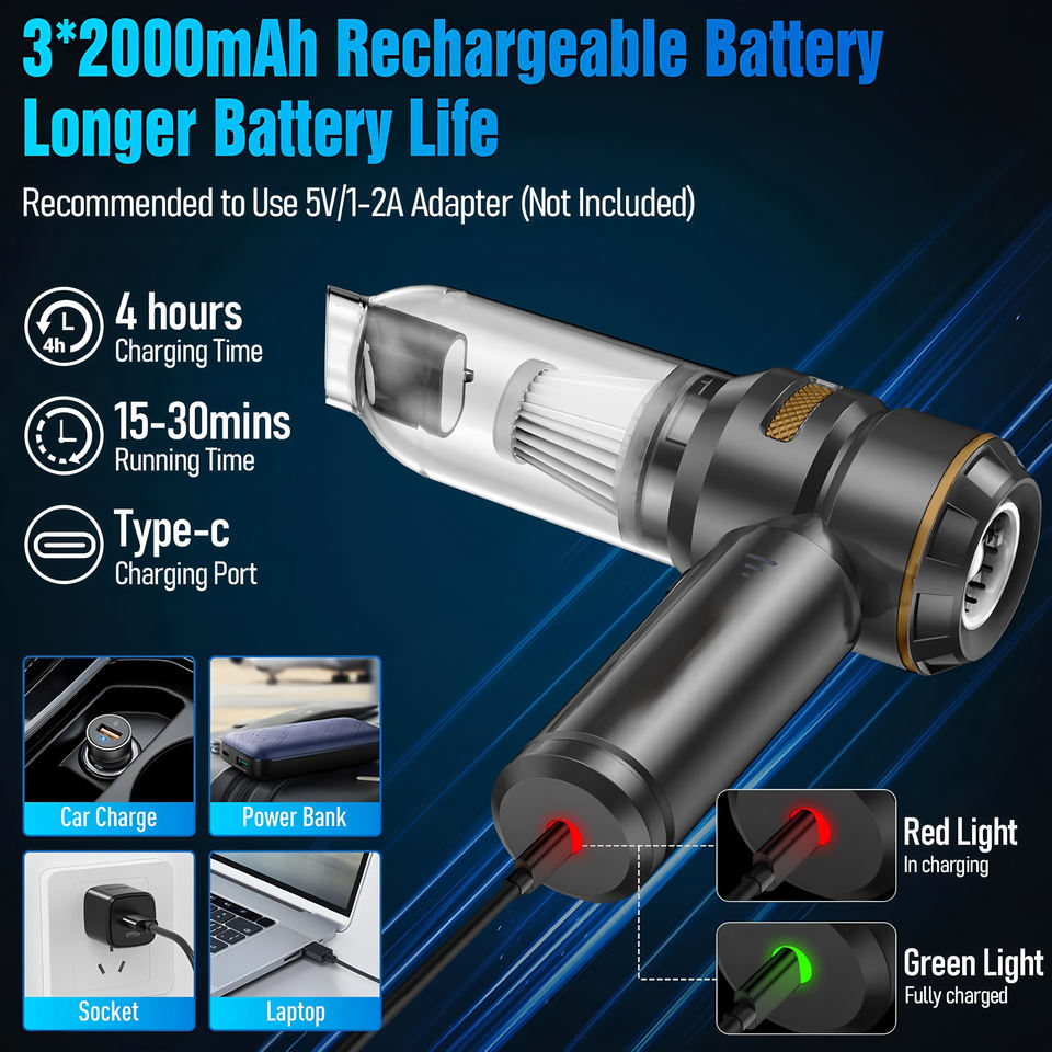 เครื่องดูดฝุ่นไร้สาย 3 in 1 แบบพกพา ความเร็ว 3 ระดับ แรงดูด 18000Pa ใช้พลังงานแบตเตอรี่ กำลังแรง ไร้สาย ขนาดเล็ก สำหรับรถยนต์