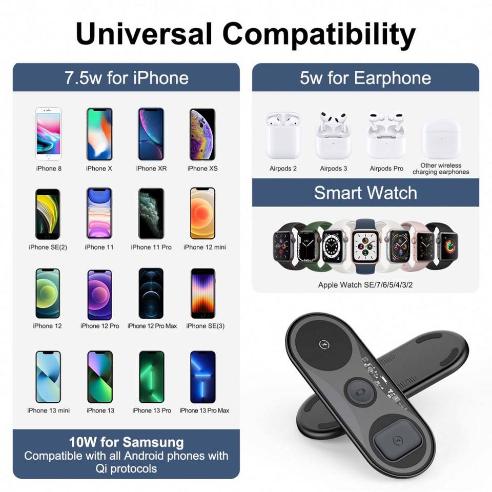 ชนิด:Wireless Charger, 3 In 1 Wireless Charging Station, แท่นชาร์จไร้สายแบบ4 in 1แท่นชาร์จแบบไร้สาย
