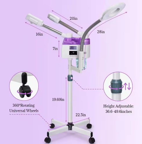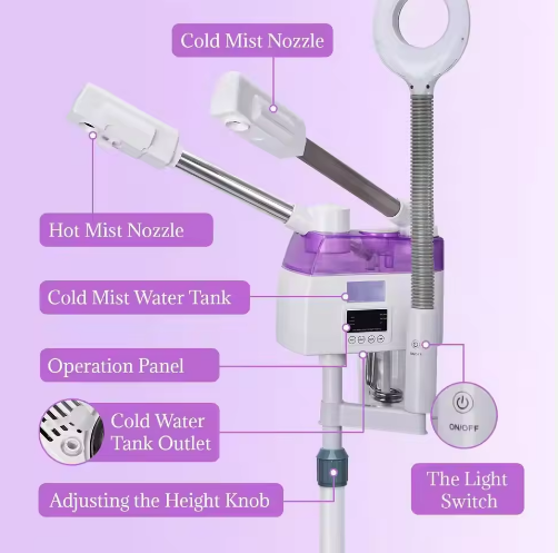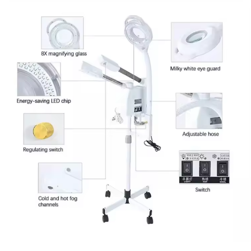 เครื่องอบไอน้ำร้อน-เย็น 3 in 1 พร้อมไฟวงแหวนขยาย 8 เท่า ดีไซน์ทันสมัย สำหรับร้านเสริมสวย ซาวน่า เครื่องพ่นไอน้ำโอโซน