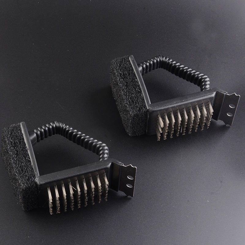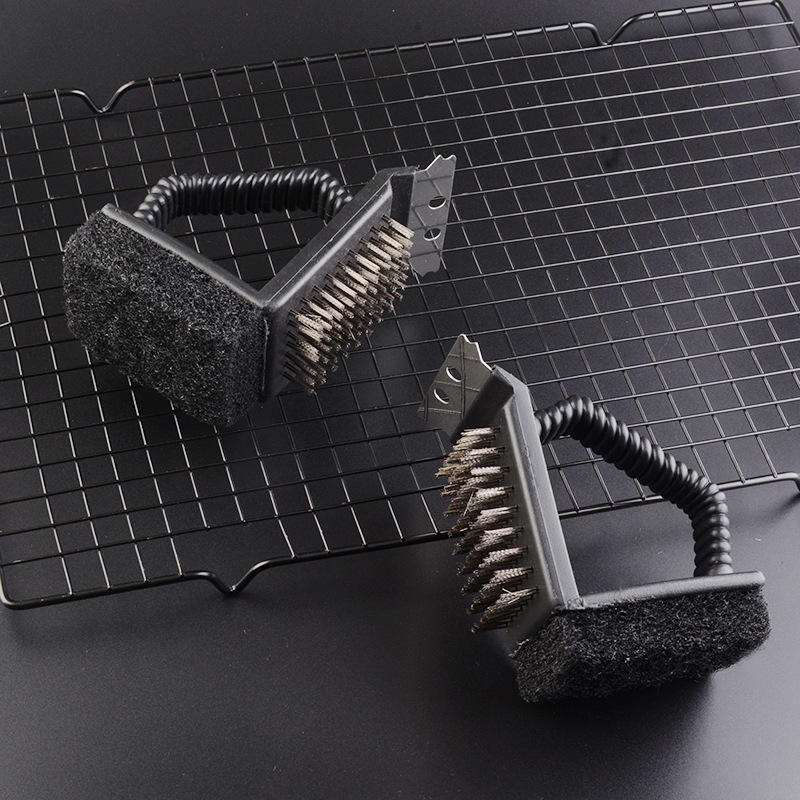 แปรงปิ้งย่างสแตนเลส 3-in-1 แบบมุมฉาก สำหรับทำความสะอาดตะแกรงปิ้งย่างกลางแจ้ง ทนทาน ทำจากสแตนเลส