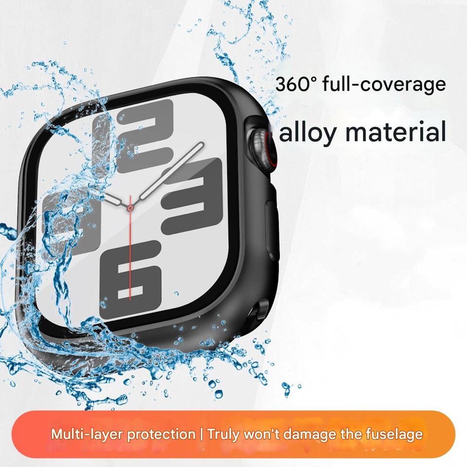 เคสป้องกันหน้าจอแบบ3 in 1, ปกป้องใบหน้าด้วยกระจกนิรภัยสมาร์ทวอทช์กันน้ำเคสโลหะสำหรับ10/11 Apple Watch Series