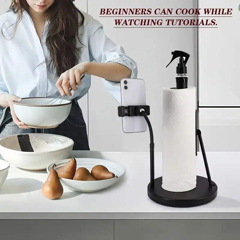 ที่วางของในครัวสแตนเลส 3-in-1 พร้อมที่ใส่กระดาษทิชชู่ ที่วางโทรศัพท์แบบพับได้ ขวดสเปรย์หมุนได้ 360 องศา แขนปรับได้