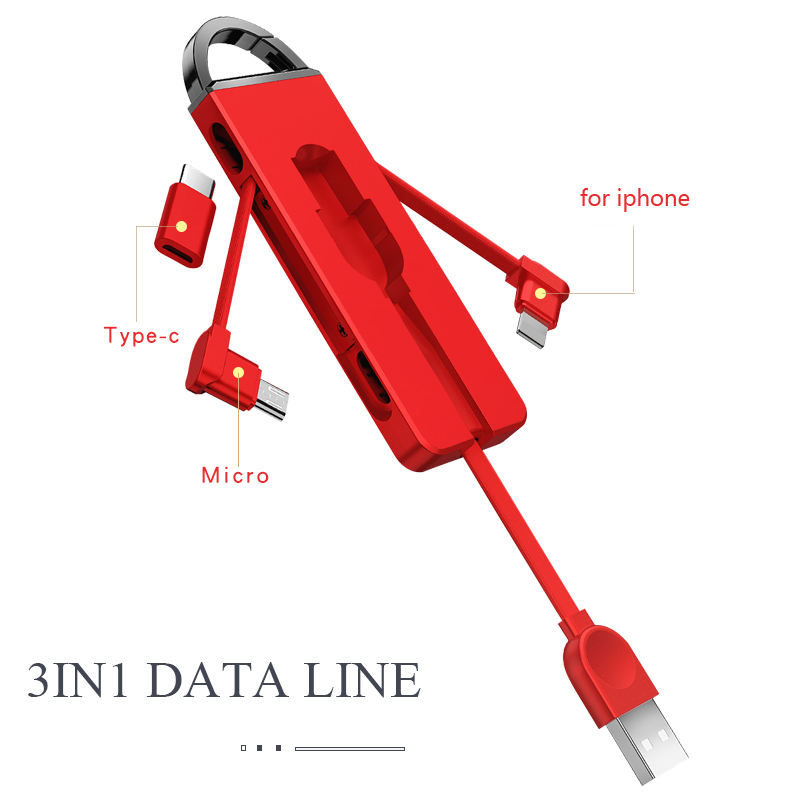 สาย USB แบบ3 in 1สายชาร์จแบบ Micro สำหรับ iPhone x 8 7 6 plus iPad Air keychain สายชาร์จแบบซ่อนสำหรับ Xiaomi