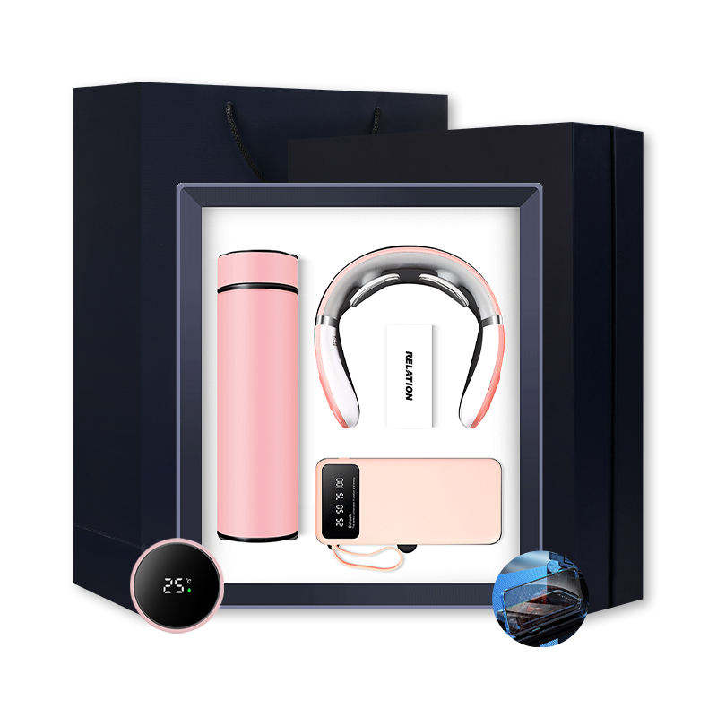3 in 1กระติกน้ำสุญญากาศสำหรับนวดคอพร้อมแท่นวางโทรศัพท์ชุดของขวัญต้อนรับนักธุรกิจที่หรูหรา