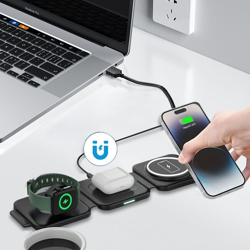 3 in 1ที่ชาร์จแบบพกพาระบบแม่เหล็กไร้สายพับได้2025ชาร์จโทรศัพท์ไร้สายแบบมัลติฟังก์ชัน15W
