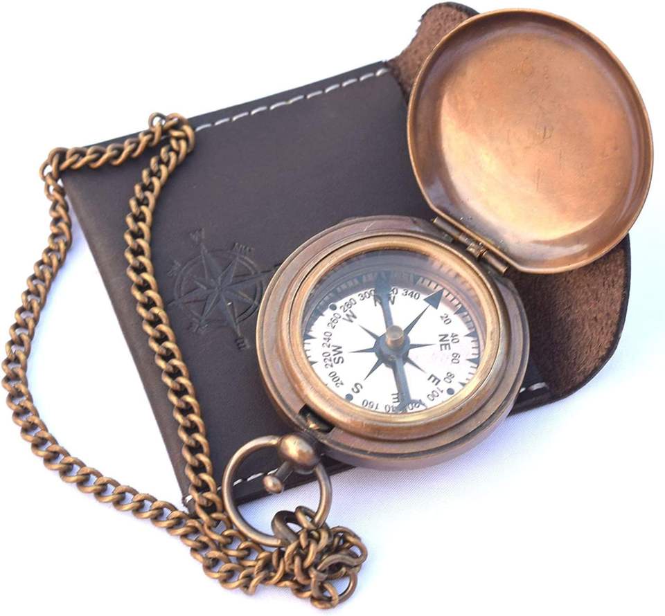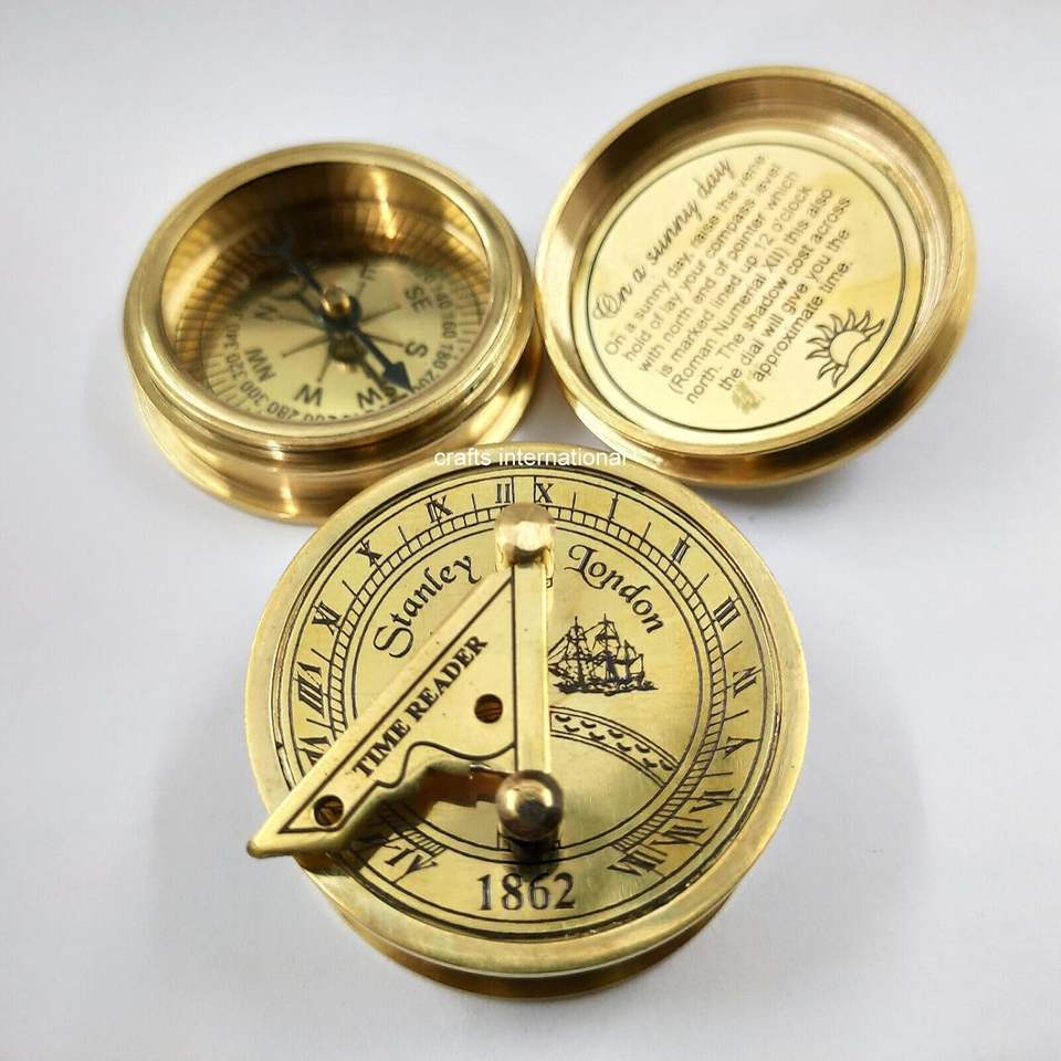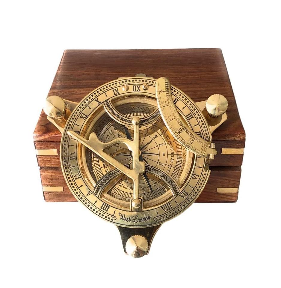 นาฬิกาแดดทองเหลืองขนาด3นิ้วลายกระเป๋าใส่ของชำร่วยพระอาทิตย์ในกล่องไม้ของขวัญทางทะเลนาฬิกาโจรสลัดเรือจำลอง