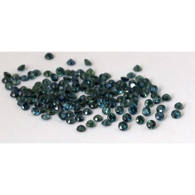พลอยไพลินสีเขียวอมฟ้าธรรมชาติ ขนาด 3 มม. น้ำหนัก 0.152 กะรัต ทรงกลมเจียระไนแบบบริลเลียนท์ สำหรับทำเครื่องประดับ