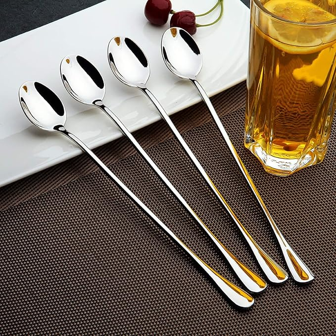 ชุดช้อนสแตนเลสด้ามยาว ช้อนโลหะทนทานสำหรับกาแฟ ชา ของหวาน ใช้ในครัว รับประทานอาหาร และคนเครื่องดื่ม