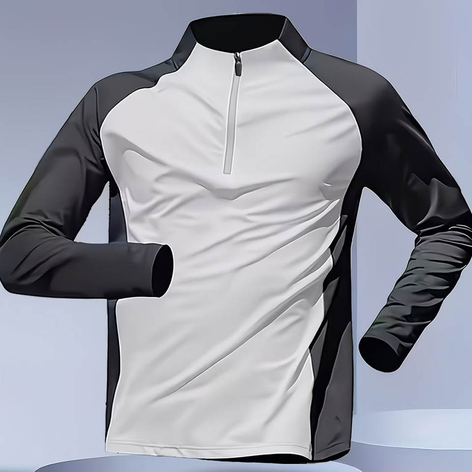 เสื้อยืดแขนยาวผู้ชายแบบแห้งเร็ว 3 ตัว พร้อมซิปครึ่งตัวที่คอ ระบายอากาศได้ดี ซับเหงื่อ เหมาะสำหรับออกกำลังกาย