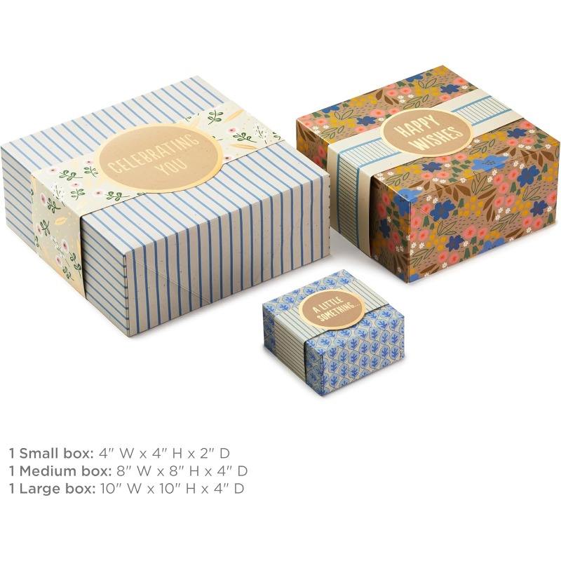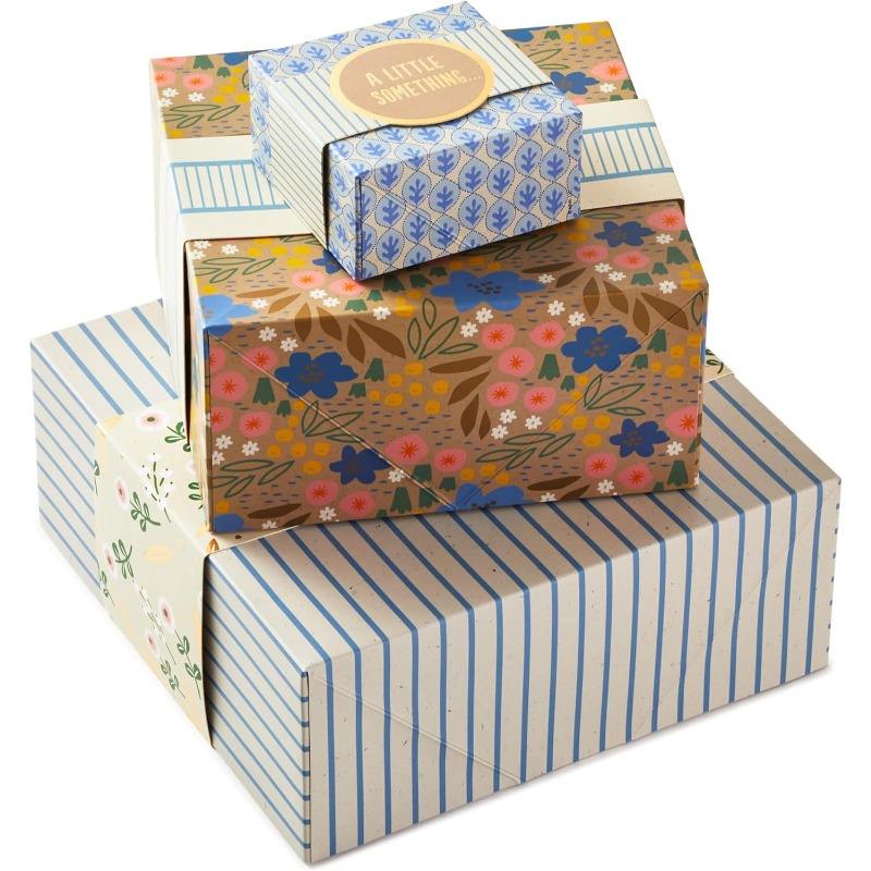 ชุดกล่องของขวัญ 3 ชิ้น ขนาดต่างๆ (ลายดอกไม้และลายทาง) เหมาะสำหรับห่อของขวัญ สามารถปรับแต่งได้ตามต้องการ