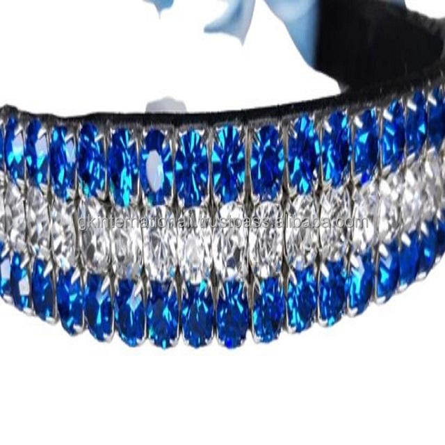 3แถวคาปรีคริสตัลสีฟ้าและสีใสทำด้วยมือทำด้วยมือหนังวัวเต็มหนัง