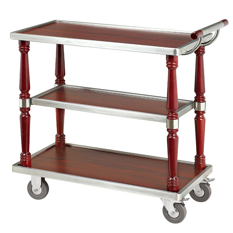 รถเข็นสำหรับเสิร์ฟเหล้าทำจากไม้โลหะ3ชั้นรถเข็นสำหรับร้านอาหารบาร์ของโรงแรมห้องรับประทานอาหารไวน์เบียร์ชาอาหารเสิร์ฟ
