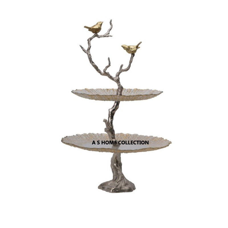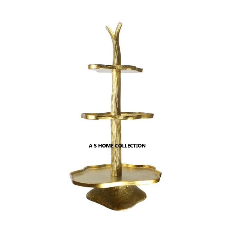 แท่นวางเค้กทรงกลมสำหรับวางเค้กแต่งงานทำจากสแตนเลสและทองเหลือง3ชั้น