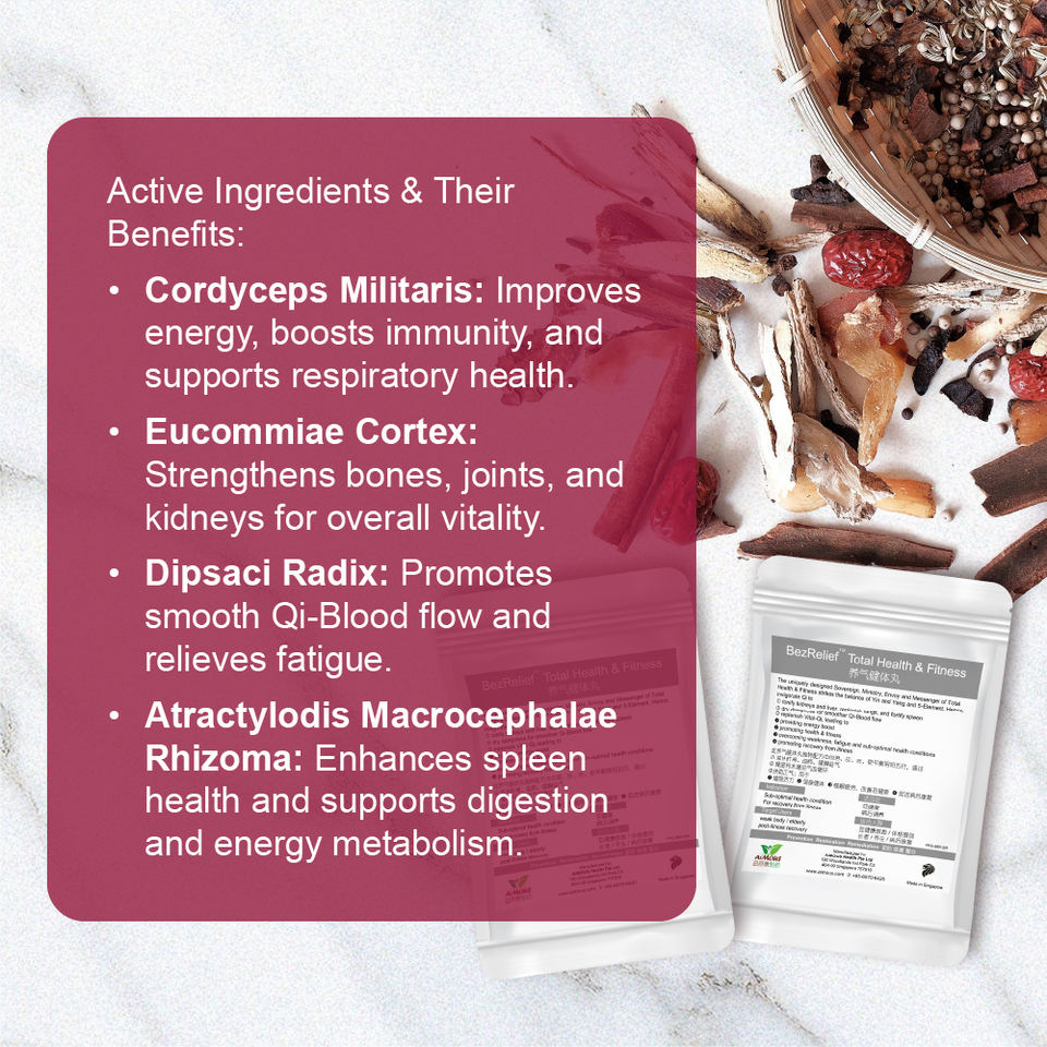 คอร์ไดเซปส์มิลิตาริส, Eucommiae Cortex, Dipsaci Radix, อะทราคทีโลไดส์มาโครเซฟาลิโซมาส่วนผสมหลัก