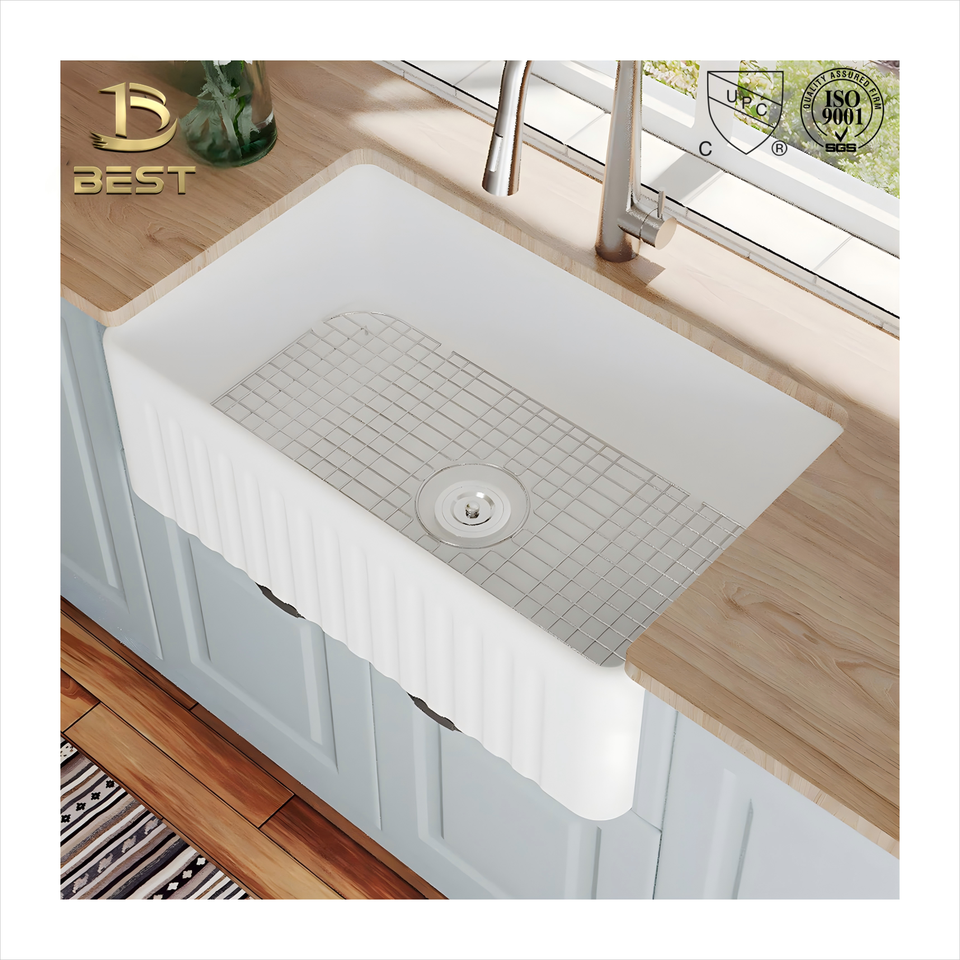 อ่างล้างจานพอร์ซเลนทรงสี่เหลี่ยมพร้อมที่ระบายน้ำขนาด30*18