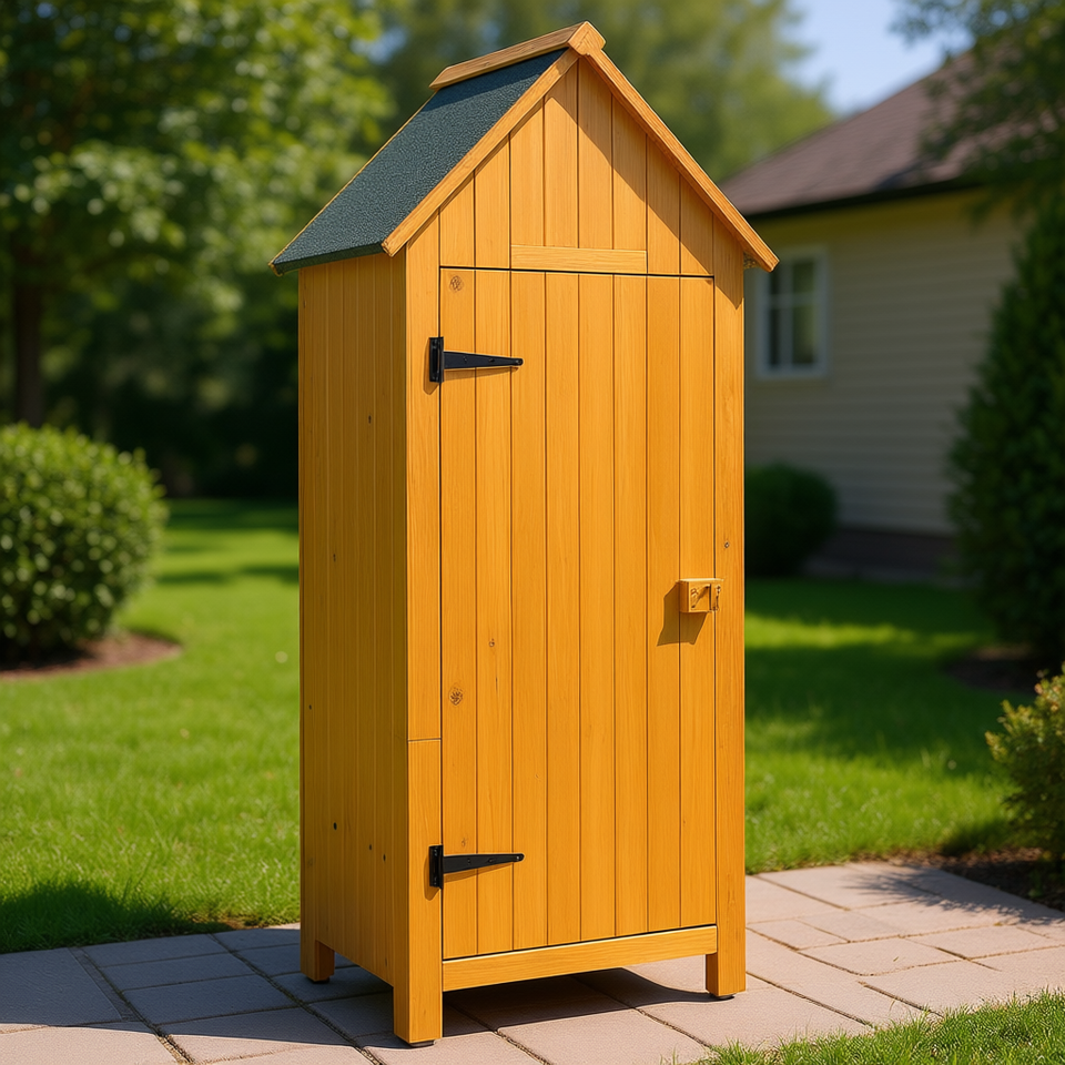 ตู้เก็บของกลางแจ้งทำจากไม้ ขนาด 30.3 x 21.3 x 70.5 นิ้ว สำหรับสวน ลานบ้าน โรงเก็บอุปกรณ์ สีเทาธรรมชาติ