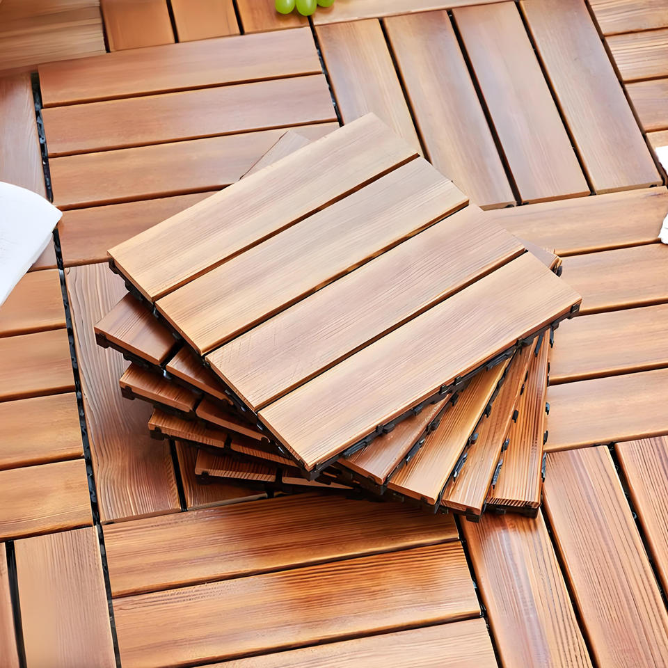 พื้นไม้เนื้อแข็งธรรมชาติเคลือบน้ำมันสำหรับกลางแจ้ง ขนาด 30*30*2.3 ซม. ทนทาน เหมาะสำหรับระเบียงและเฉลียง