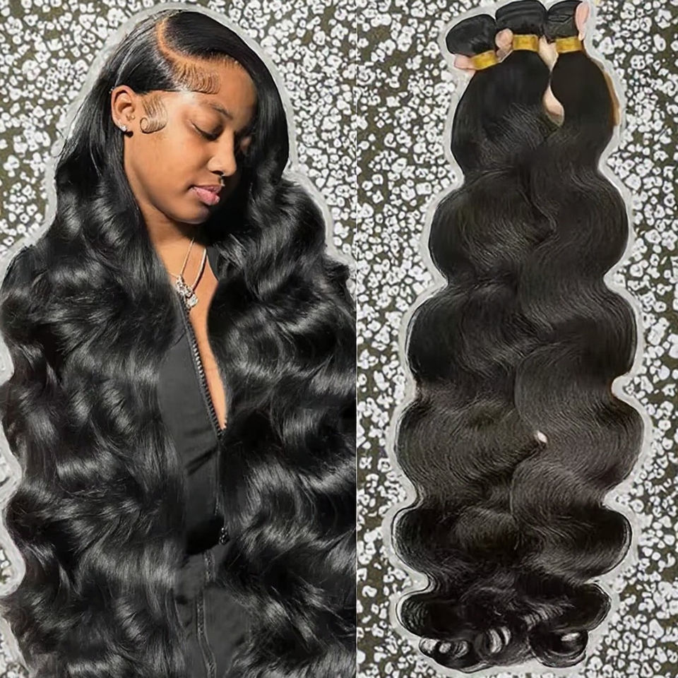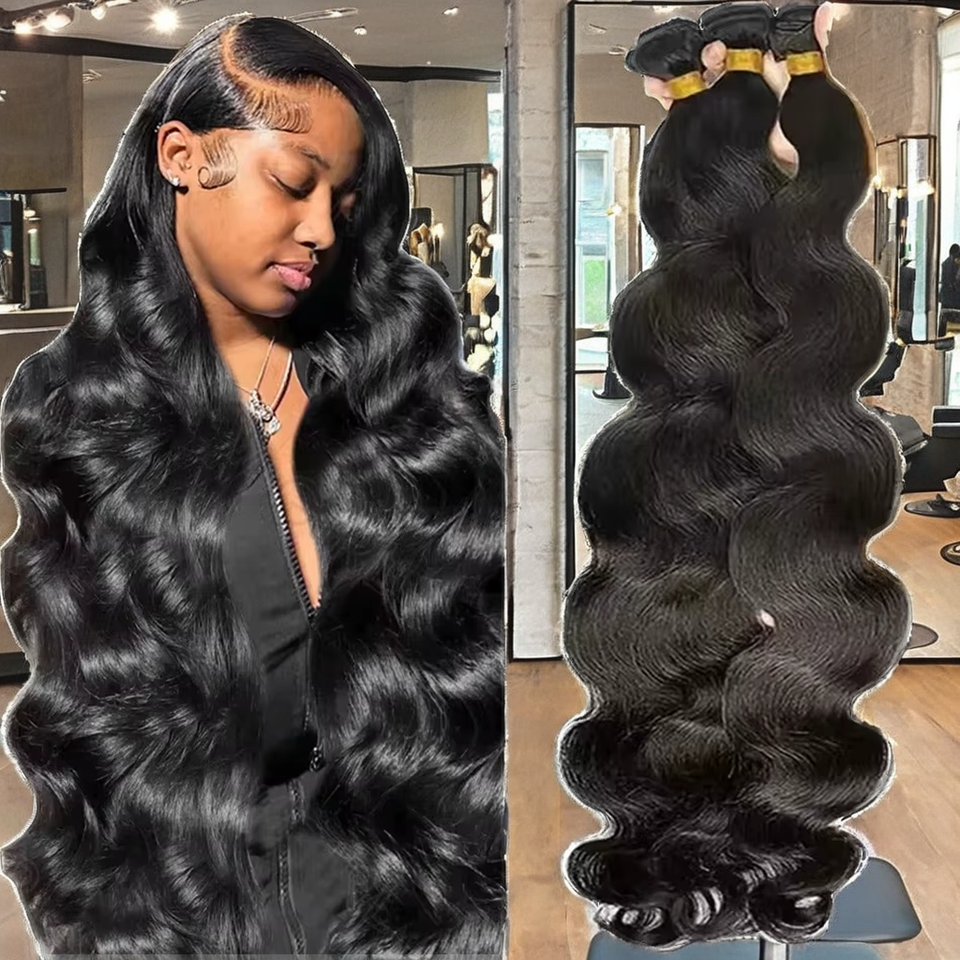 ผมต่อแบบเวฟบอดี้เวฟ ขนาด 30 32 นิ้ว ผมแท้บราซิลแบบเวอร์จิ้น ถักสองชั้นด้วยเครื่องจักร สีดำธรรมชาติ 1 มัด