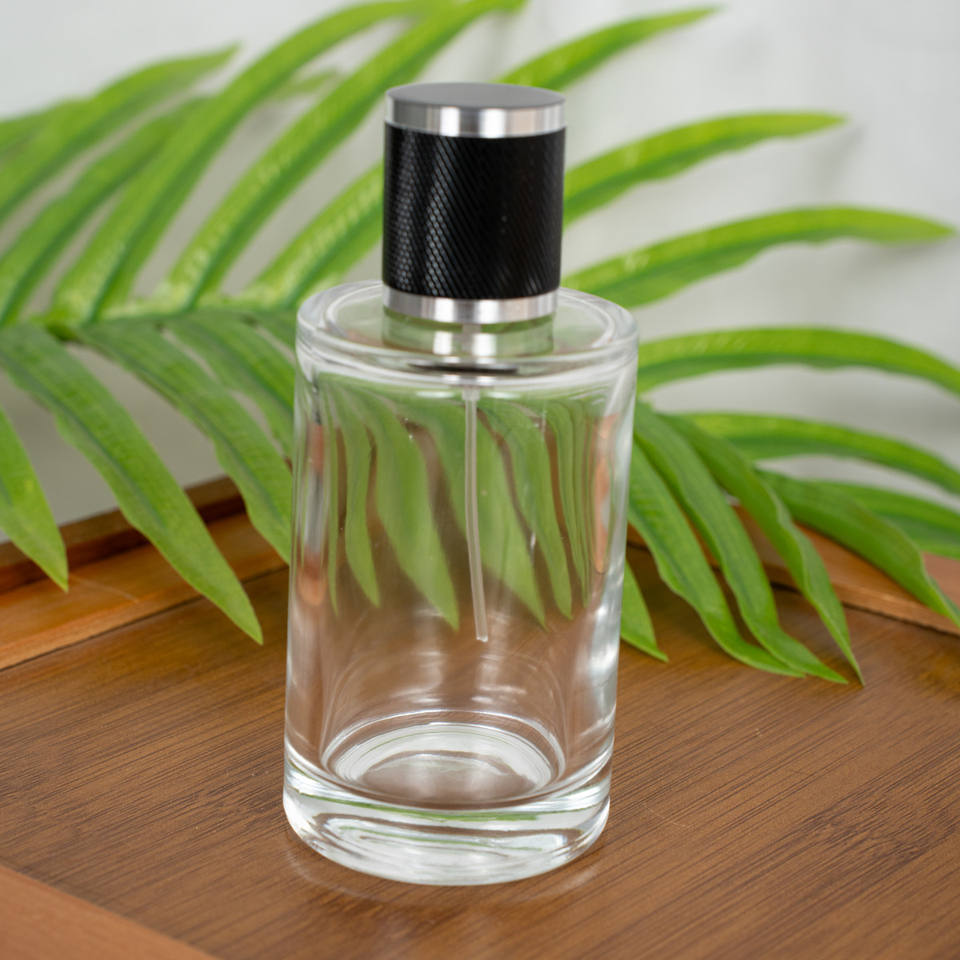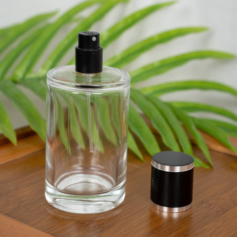 ขวดน้ำหอมแก้วทรงกระบอกขนาด 30 50 100 มล. แบบคอจีบ พกพาสะดวก พร้อมหัวฉีดสเปรย์แบบกด สำหรับบรรจุเครื่องสำอางหรือน้ำหอม