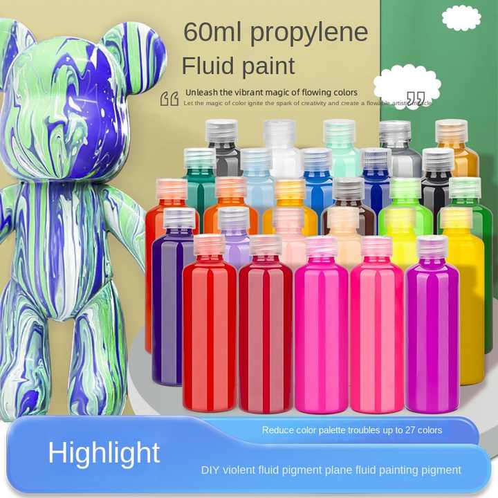 สีอะคริลิค Fluid Bear ขนาด 30/60/120/500/1000/2000 มล. 44 สี สีอะคริลิคไหลง่ายสำหรับงานเพ้นท์แบบ Fluid Painting Bear