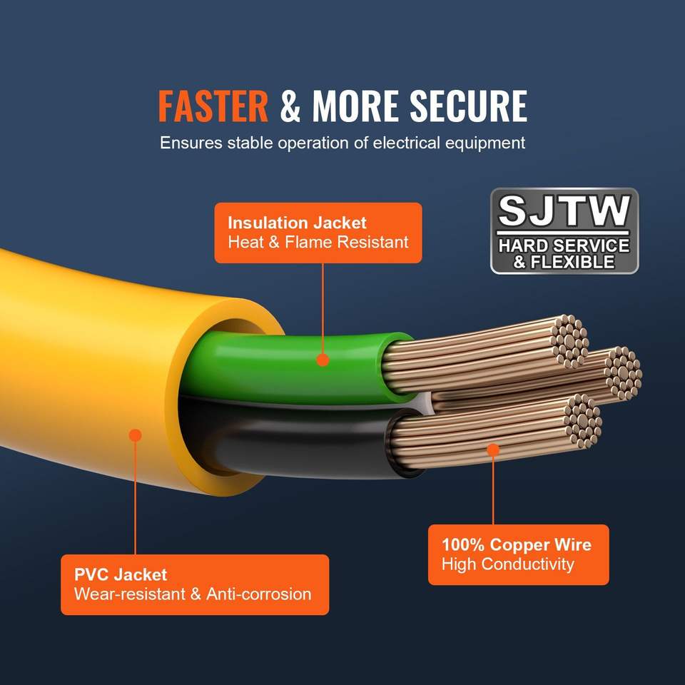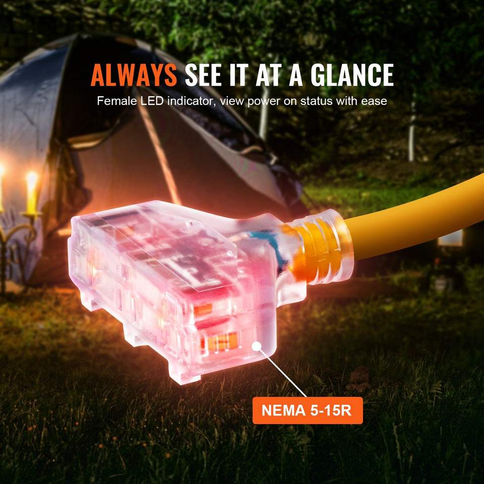 สายต่อเครื่องกำเนิดไฟฟ้าแบบหนา 30 แอมป์ ยาว 25 ฟุต สายไฟสำหรับใช้งานกลางแจ้ง NEMA L5-30P ต่อกับเต้ารับ NEMA 5-15R STJ 125V 375W จำนวน 3 ช่อง