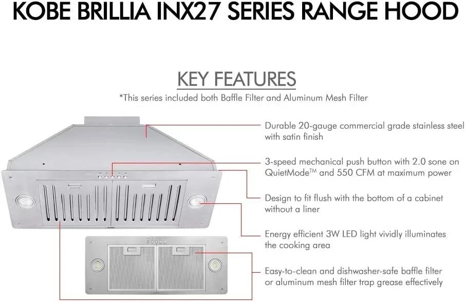 30 ชิ้น ตัวกรองแบบฝังในตัว รุ่น Range Hood 550 CFM สแตนเลสสตีล LED พร้อมตัวกรอง