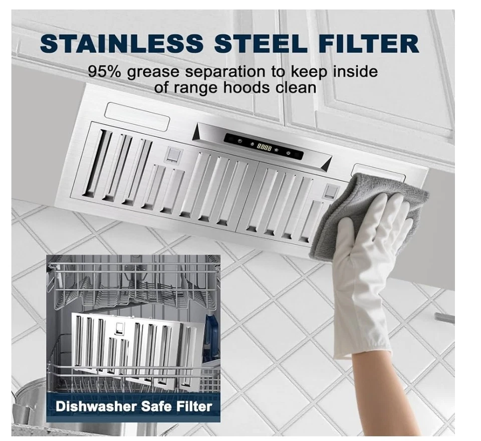 30 ฮูดดูดควันสเตนเลสแบบติดตั้งในครัว/แบบไม่มีท่อ