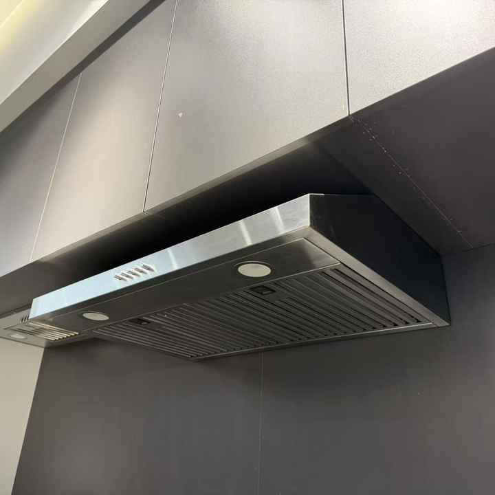 เครื่องดูดควันไฟฟ้าขนาด 30 นิ้ว 1000 ลูกบาศก์เมตรต่อชั่วโมง ทำจากสแตนเลส พร้อมไฟ LED สองดวง และแผ่นกรอง