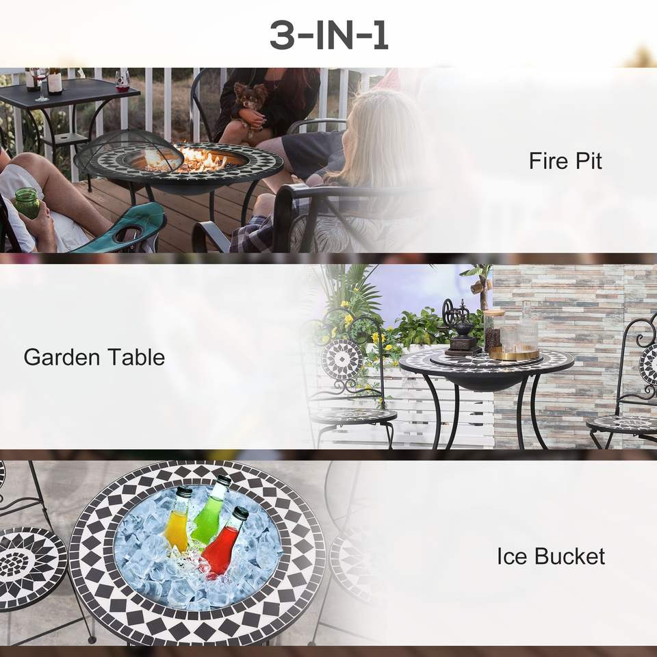 30นิ้ว3-in-1กลางแจ้งกองไฟโต๊ะรับประทานอาหารชามเผาไม้ลานน้ำแข็งชั้นเก็บของประกายฝาครอบหน้าจอ-โมเสคบาบีคิว