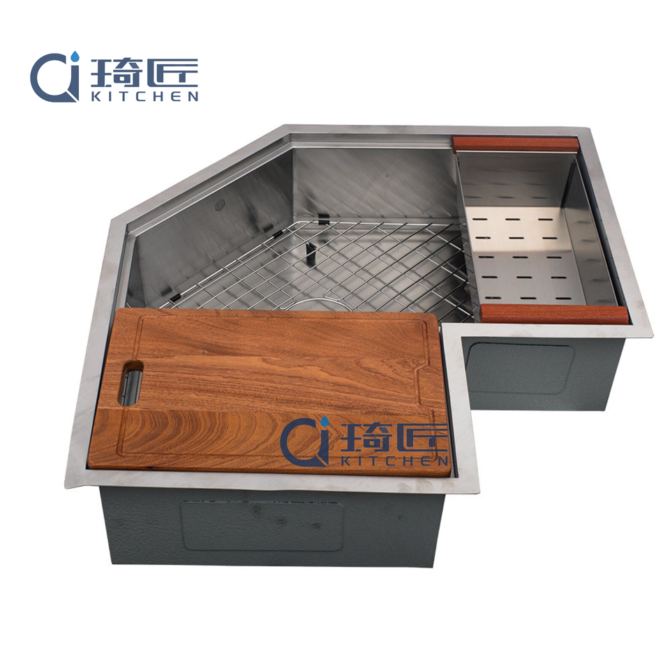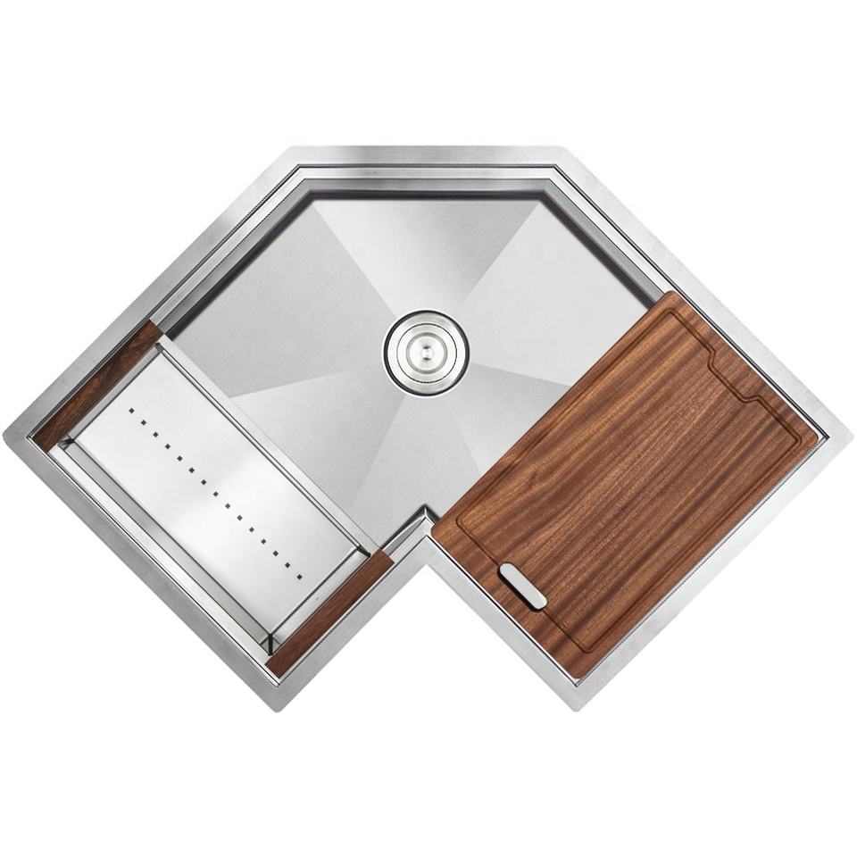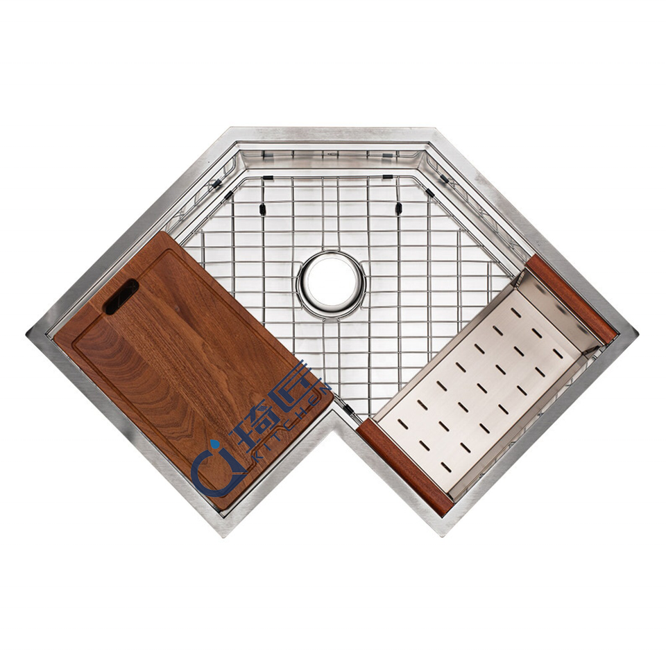 อ่างล้างจานมุมแบบติดตั้งใต้เคาน์เตอร์ ขนาด 30 นิ้ว ผิวซาตินสีทอง ผลิตจากสแตนเลสสตีลเกรด 16 สำหรับห้องครัวสไตล์โมเดิร์น
