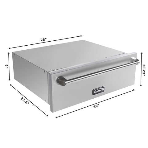 ลิ้นชักอุ่น KM-RWD-30SS สแตนเลสขนาด30นิ้วพร้อมช่องสามช่องสำหรับใส่อุปกรณ์