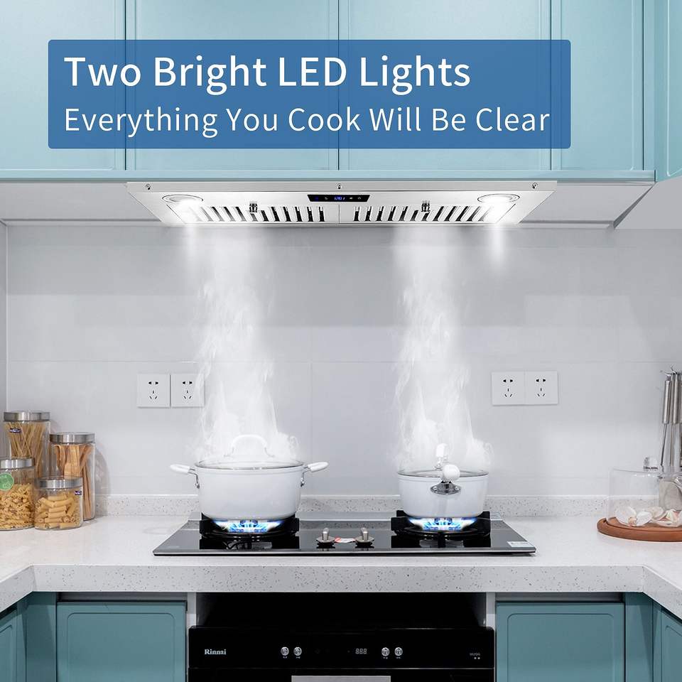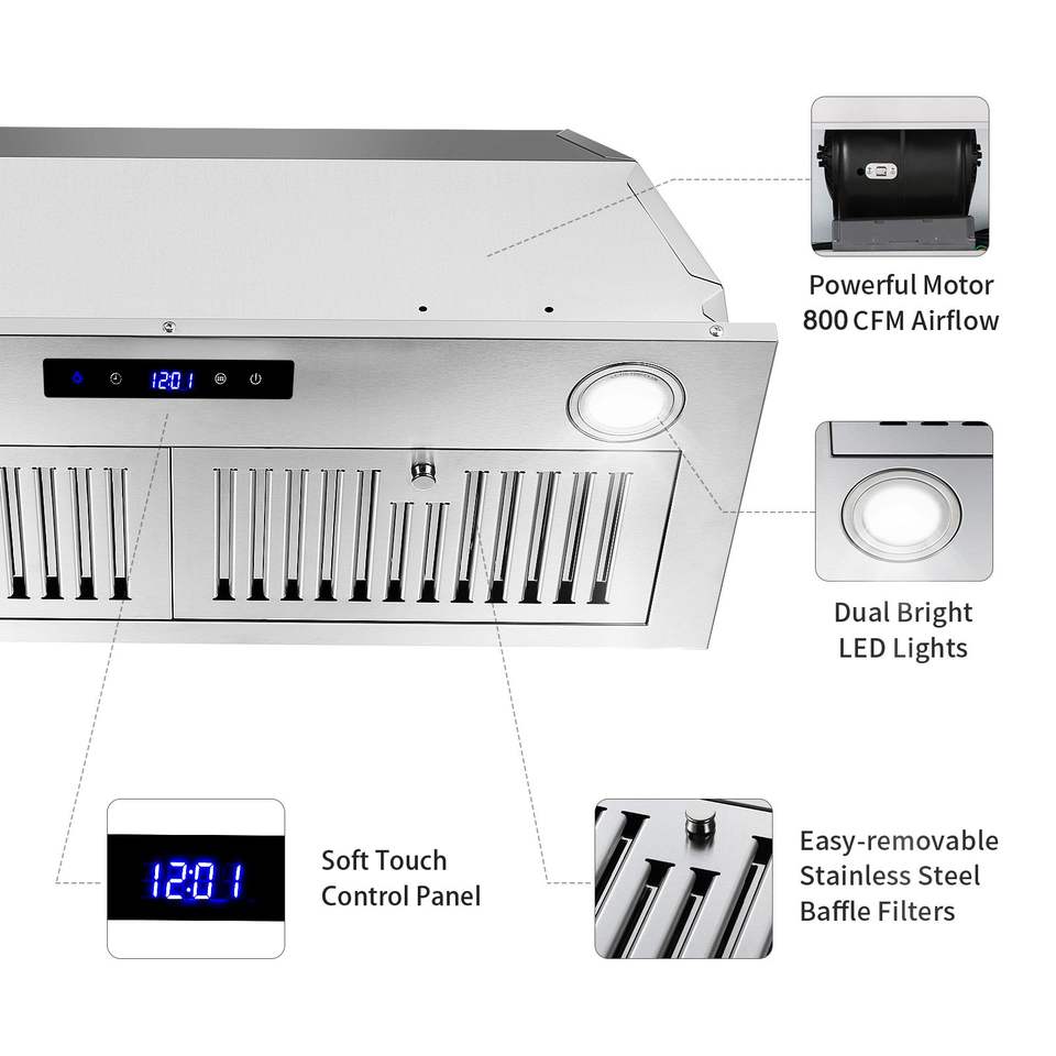 เครื่องดูดควันสเตนเลสสตีลขนาด 30 นิ้ว 600CFM พร้อมระบบควบคุมแบบสัมผัสด้านหน้า สำหรับเตาแก๊ส