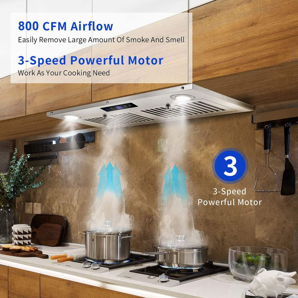 30-Inch Stainless Steel Range Hood Insert 600CFM Kitchen Vent Hood with Front Touch Control Built-In Stove Hood
